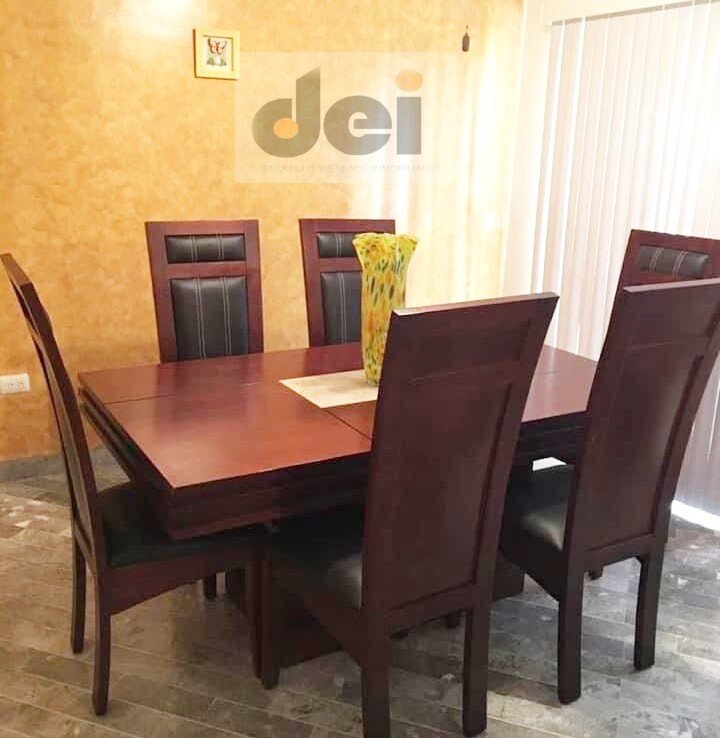Cuenta con: Cochera doble techada Sala Comedor – Cocina Integral (estufa, refrigerador y alacena) Cuarto de lavado (lavadora y secadora) 2 baños Jardín Terraza techada Cuarto de servicio con baño 3 recamaras