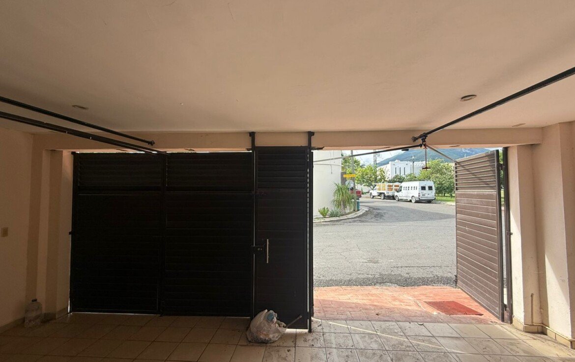 Cochera techada con portón electrónico para 2 autos.