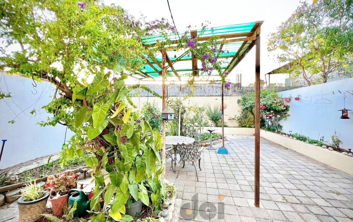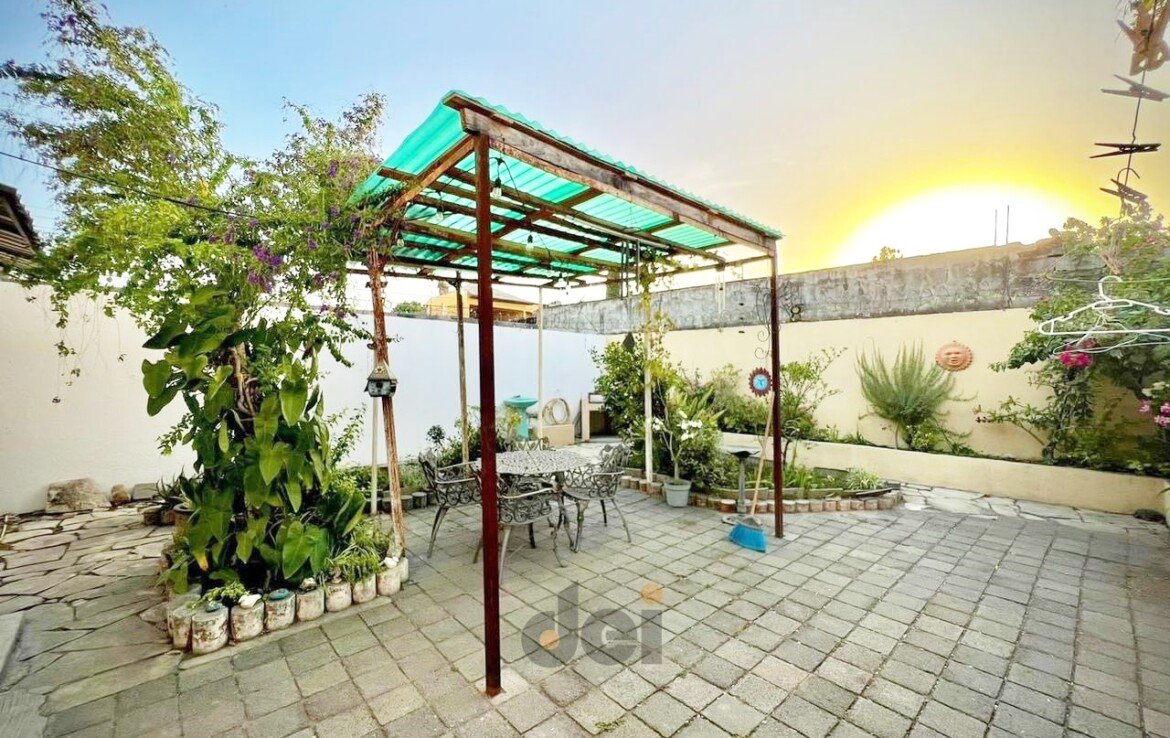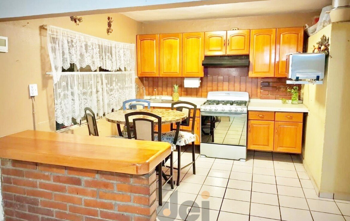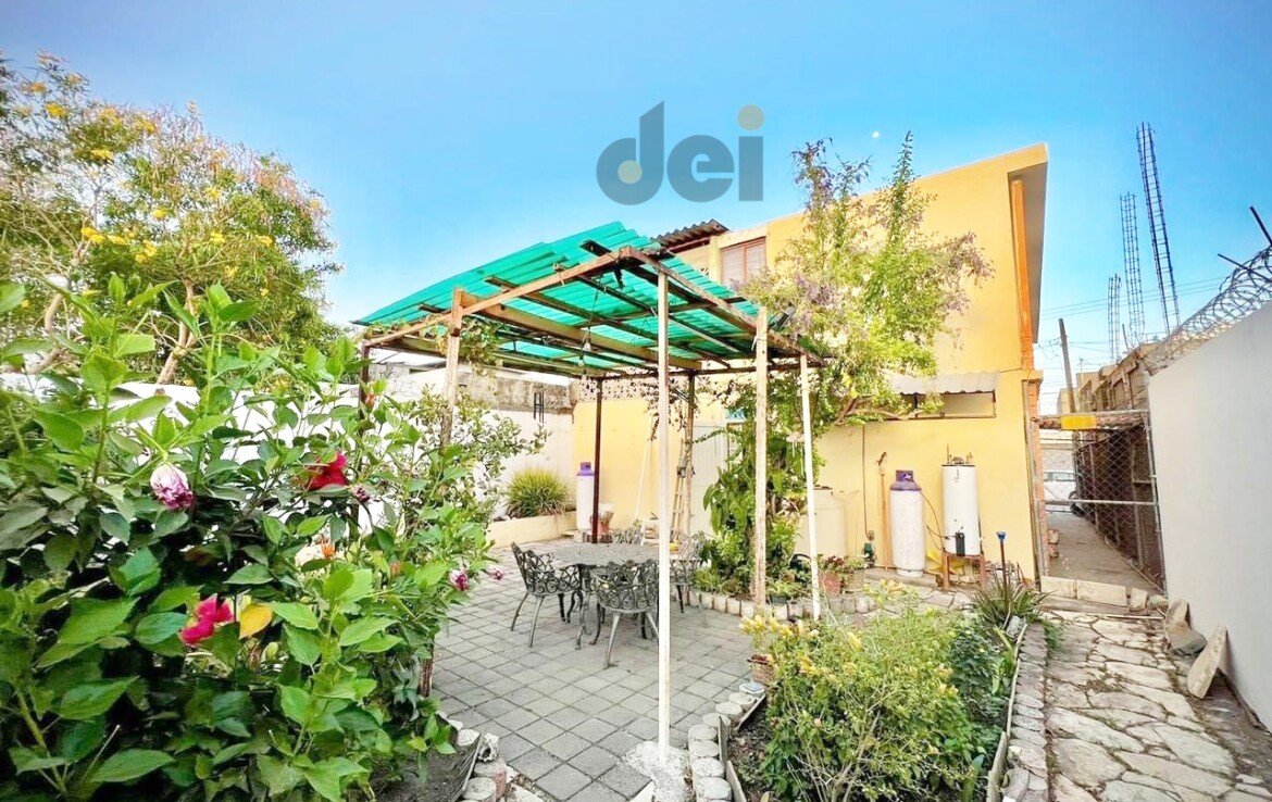 PLANTA BAJA. – Cochera con portón para 1 auto, sala – comedor, cocina integral, lavandería techada, 1 recamara, 1 baño completo, pasillo de servicio, patio grande con jardín y área de asador.