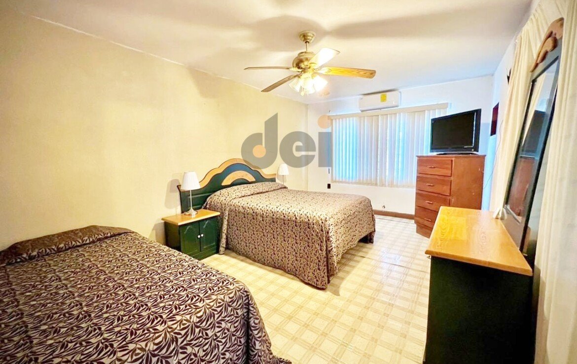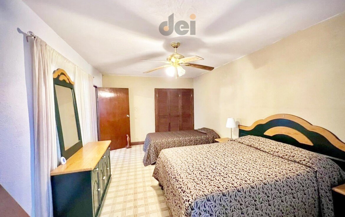 Equipada con: abanicos de techo, closets, tinaco con bomba, protectores.