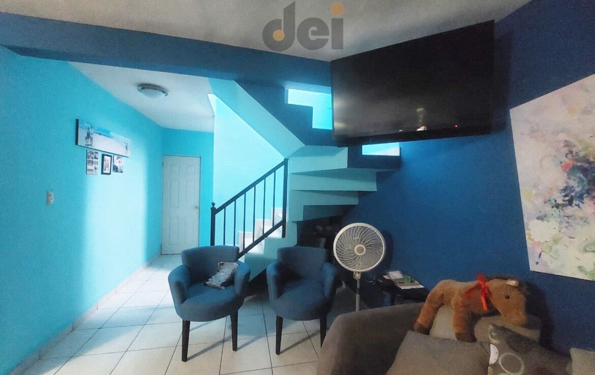 PLANTA BAJA. – Cochera techada con portón eléctrico para 2 autos, recibidor, sala – comedor, cocina integral, medio baño, área de lavado techada, patio