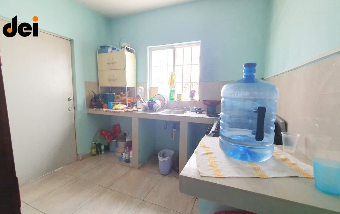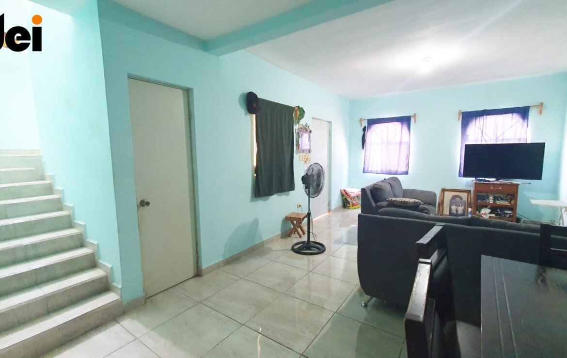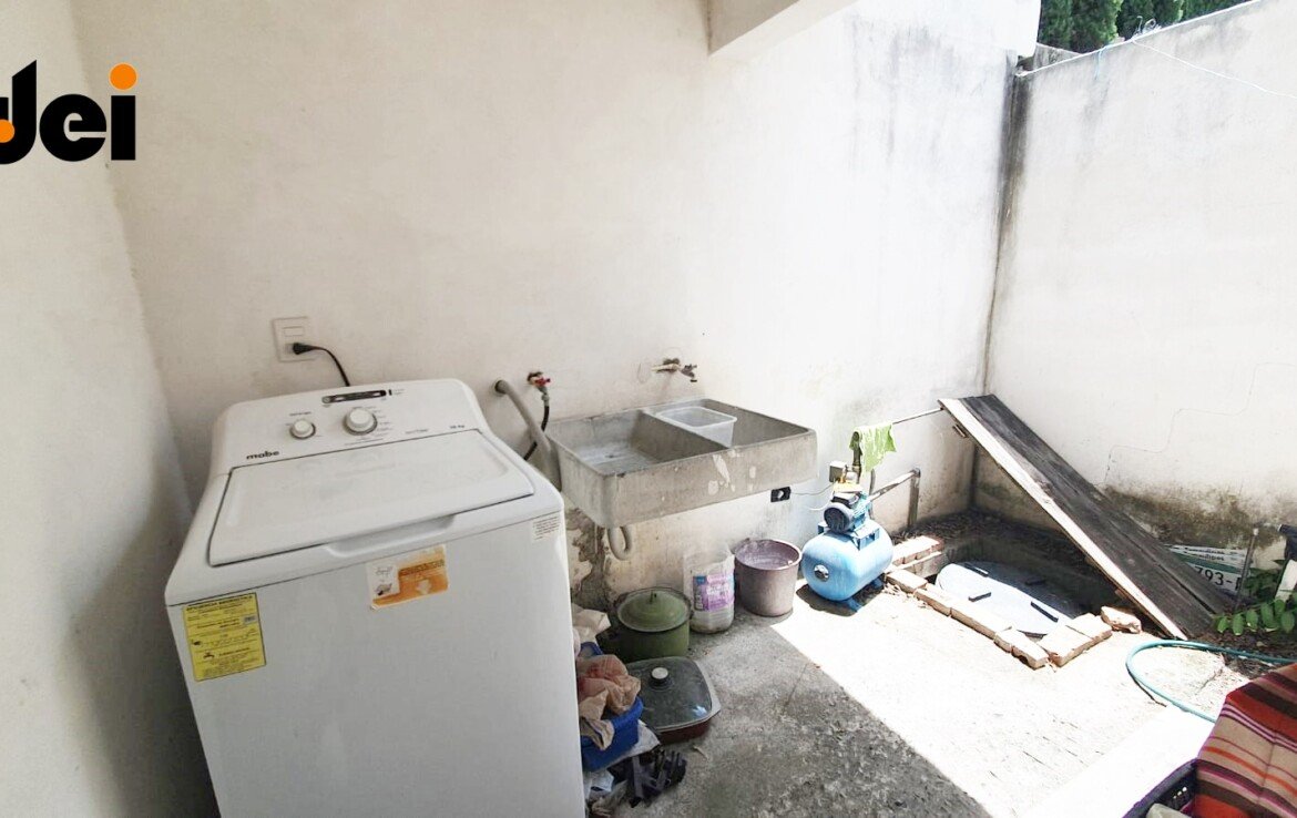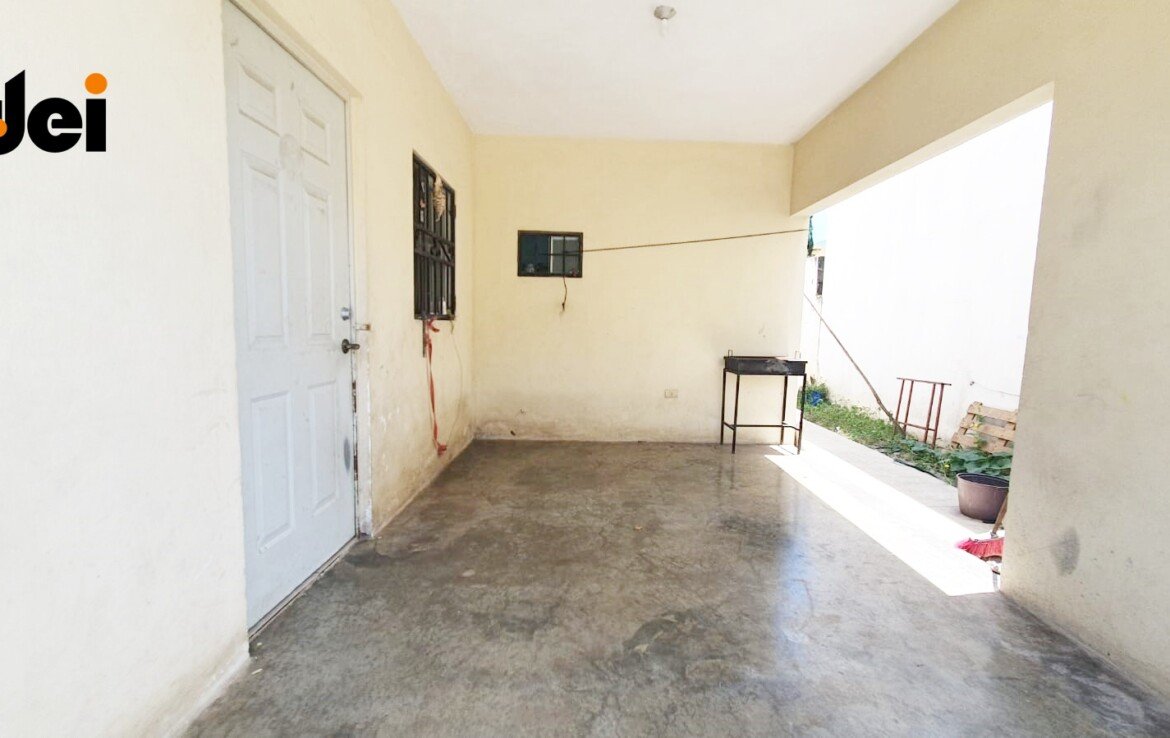 Cochera para 1 auto, Sala – comedor, cocina, recamara con su baño completo, medio baño, lavandería techada, pasillo de servicio