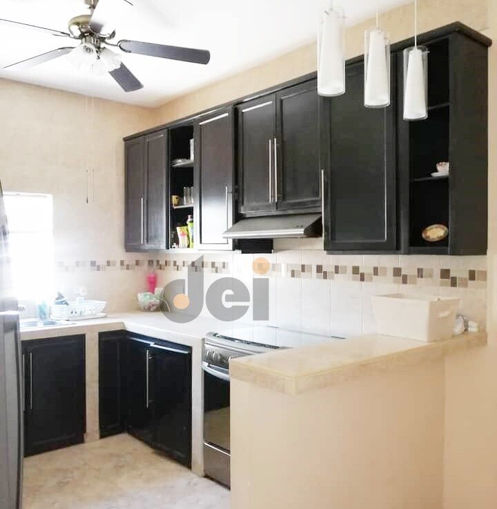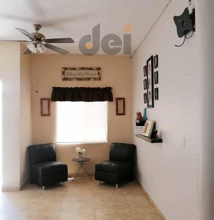 Sala – comedor con minisplit , Cocina integral con barra , Estudio, 3 recamaras, 2 baños completos, patio techado con lavandería
