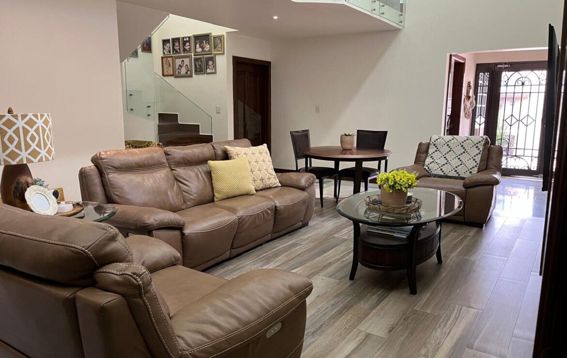✅Recibidor ✅Sala ✅Comedor ✅Cocina ✅3 Recamaras con baño ✅Estancia ✅Estudio ✅1/2 Baño visitas ✅Mezzanine ✅Cochera 4 carros ✅Cuarto de visitas con baño ✅Cuarto de servicio. ✅Hermoso jardín arbolado ✅Paneles solares ✅Tinaco 5,000 litros