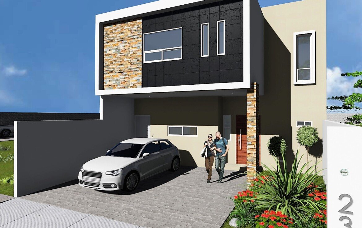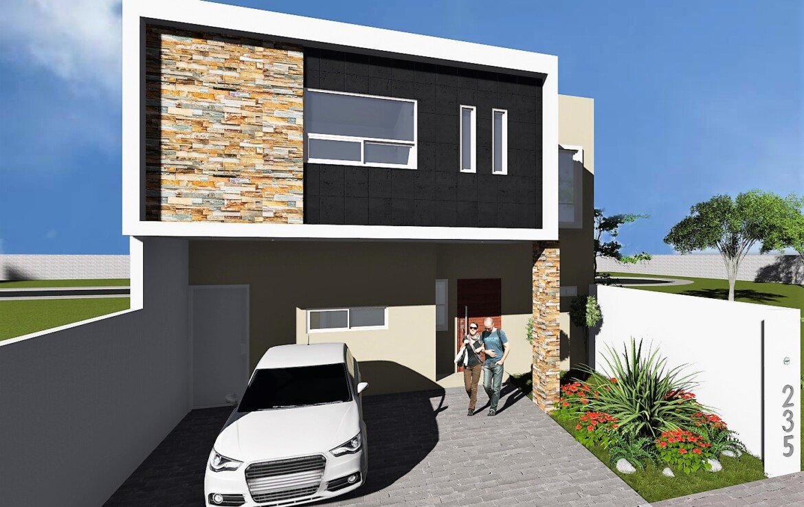 PLANTA BAJA. – Cochera para 2 autos, recibidor, sala – comedor, cocina, lavandería, medio baño, jardín