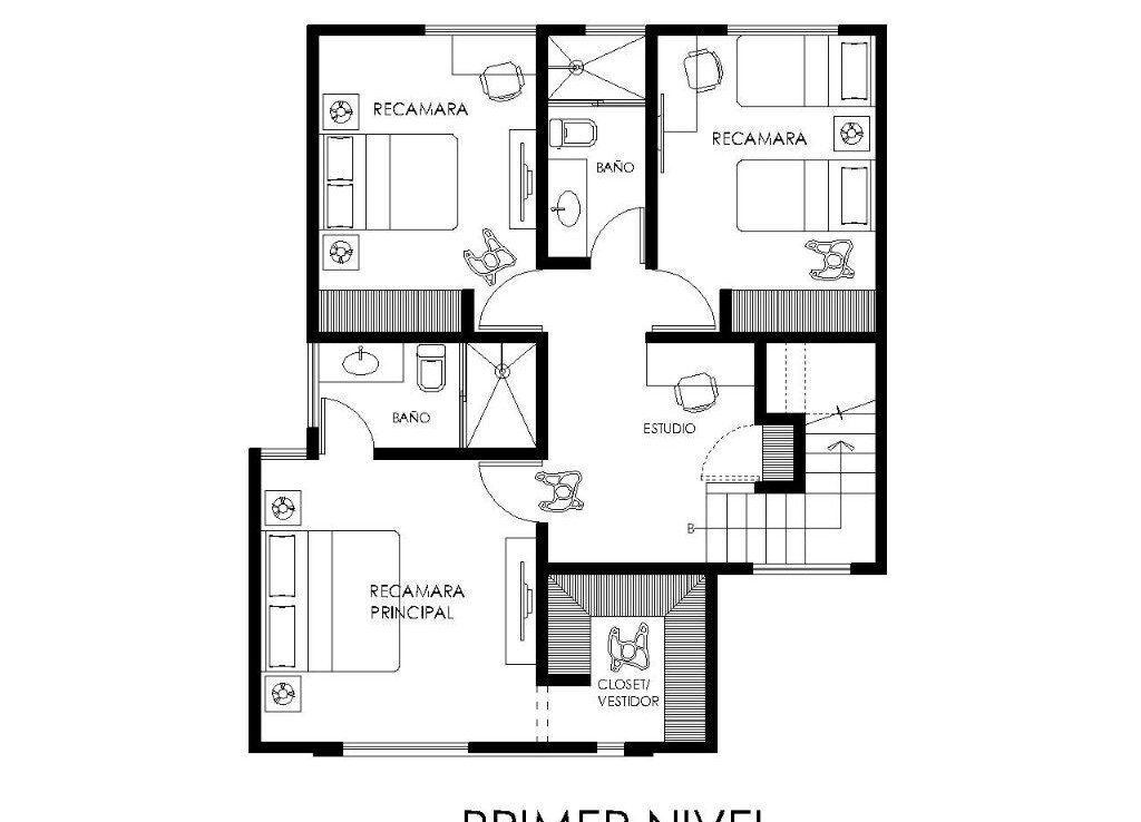 PLANTA ALTA. – 3 Recamaras, 2 baños completos, 1 vestidor, closet, estudio