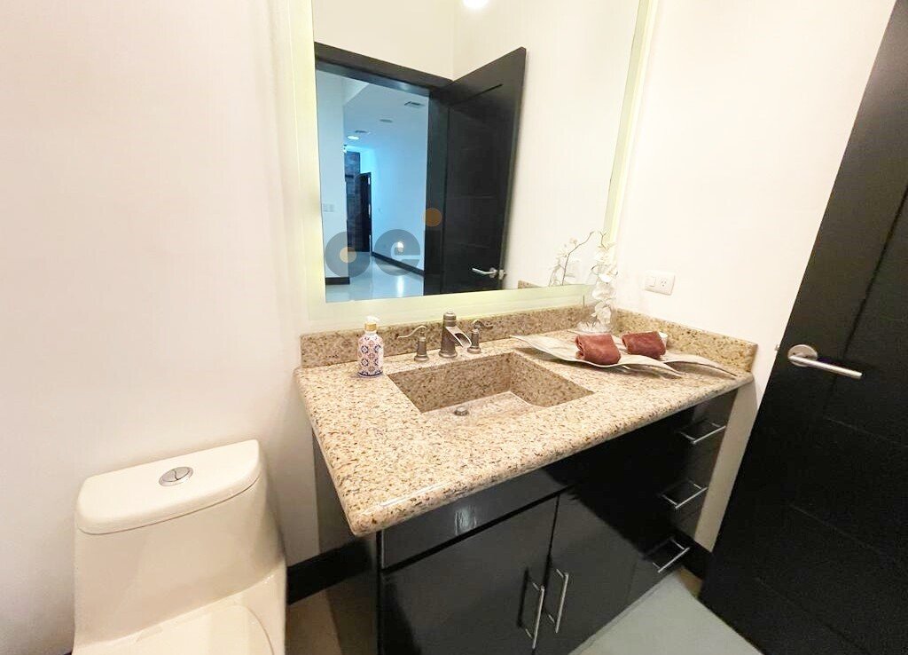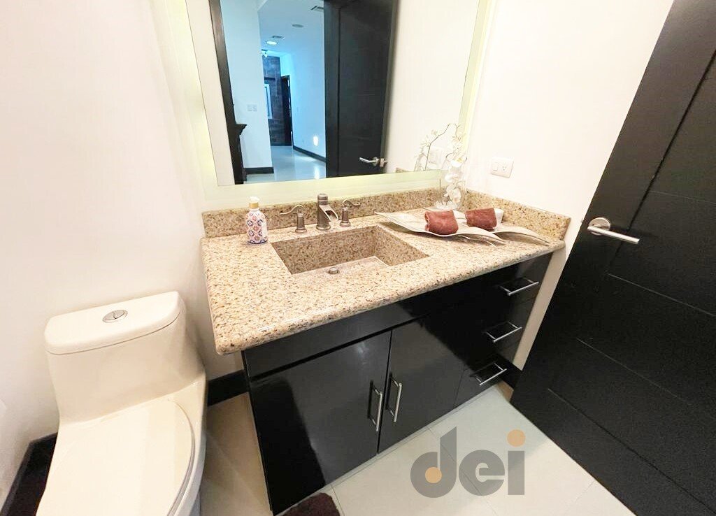 Medio baño de visitas con lavamanos con cubiertas de granito