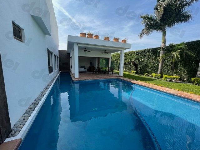 Hermosos jardines rodean la casa y una amplia alberca con canal de nado visible tanto del área social como family room le dan unas vistas inigualables.