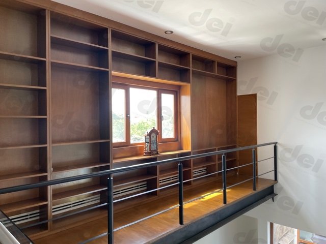 Las recamaras secundarias están en planta alta, teniendo dos recamaras junior con vestidor y baño, además de un estudio, y un cuarto de visitas con baño, la casa tiene como acento una biblioteca de madera de roble, abierta que se aprecia de todos los niveles de la casa.
