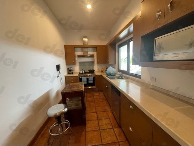 Cocina con piso de barro natural, y se conecta al cuarto de lavandería.